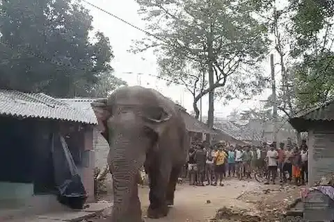 கோல்கத்தா: மேற்கு வங்கத்தின் ஜார்கிராமில் அமைக்கப்பட்டுள்ள வாக்குப்பதிவு மையத்துக்கு காட்டு யானை