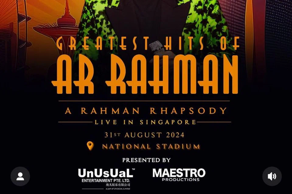 சிங்கப்பூருக்கு வருவதற்கு முன்பு ஜூலை 27ஆம் தேதி மலேசியத் தலைநகர் கோலாலம்பூரில் உள்ள புக்கிட் ஜலீல் தேசிய விளையாட்டரங்கில் ஏ.ஆர்.ரகுமான், 57, இசை நிகழ்ச்சியைப் படைக்கவுள்ளார்.