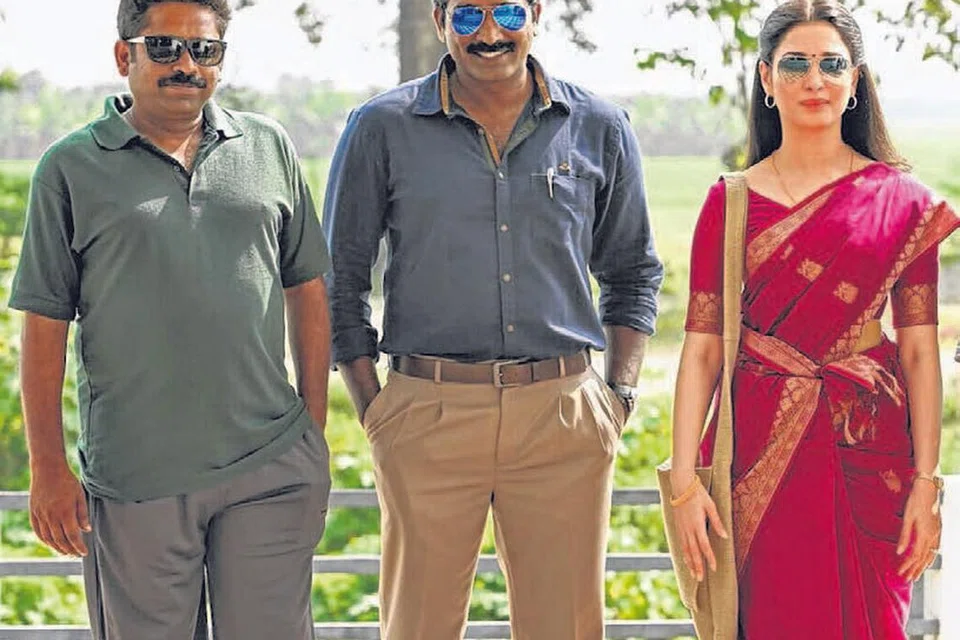 'தர்மதுரை' படப்பிடிப்பில் சீனு ராமசாமி, விஜய் சேதுபதி, தமன்னா.
