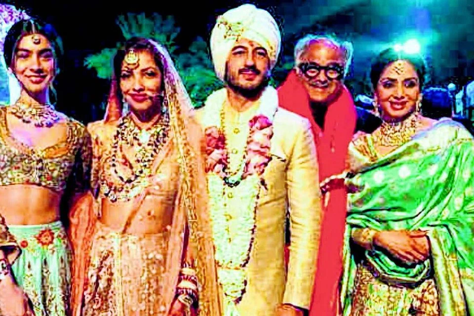 ஸ்ரீதேவியின் உயிர் பிரிவதற்கு சிறிது நேரத்திற்கு முன்னால் எடுக்கப்பட்ட படம். மணமக்கள், தமது கணவர் போனி கபூர், இளைய மகள் குஷி கபூர் (இடக்கோடி) ஆகியோருடன் சிரித்த முகமாக ஸ்ரீதேவி. படம்: இந்திய ஊடகம்