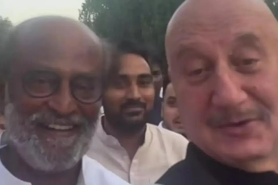 கேமராவை ரஜினியின் பக்கம் திருப்பி, ‘ஒப்புவமை இல்லாத திரு ரஜினிகாந்த்! ஈடு இணையற்றவர்! மனிதகுலத்துக்குக் கடவுள் வழங்கியுள்ள பரிசு’ என்று ஆங்கிலத்தில் கூறுகிறார் அனுபம் கெர்.