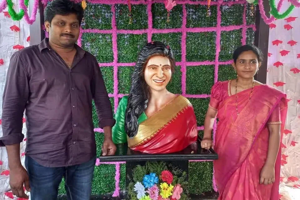 ஆந்திராவின் பாபட்லா மாவட்டம், ஆல்பாடு பகுதியைச் சேர்ந்தவர் கார் ஓட்டுநர் சந்தீப். சமந்தாவின் தீவிர ரசிகரான இவர், தனது வீட்டின் வளாகத்தில் சமந்தாவின் மார்பளவு சிலையை நிறுவி, திறப்பு விழாவையும் மிகப் பிரம்மாண்டமாக நடத்தியுள்ளார்.