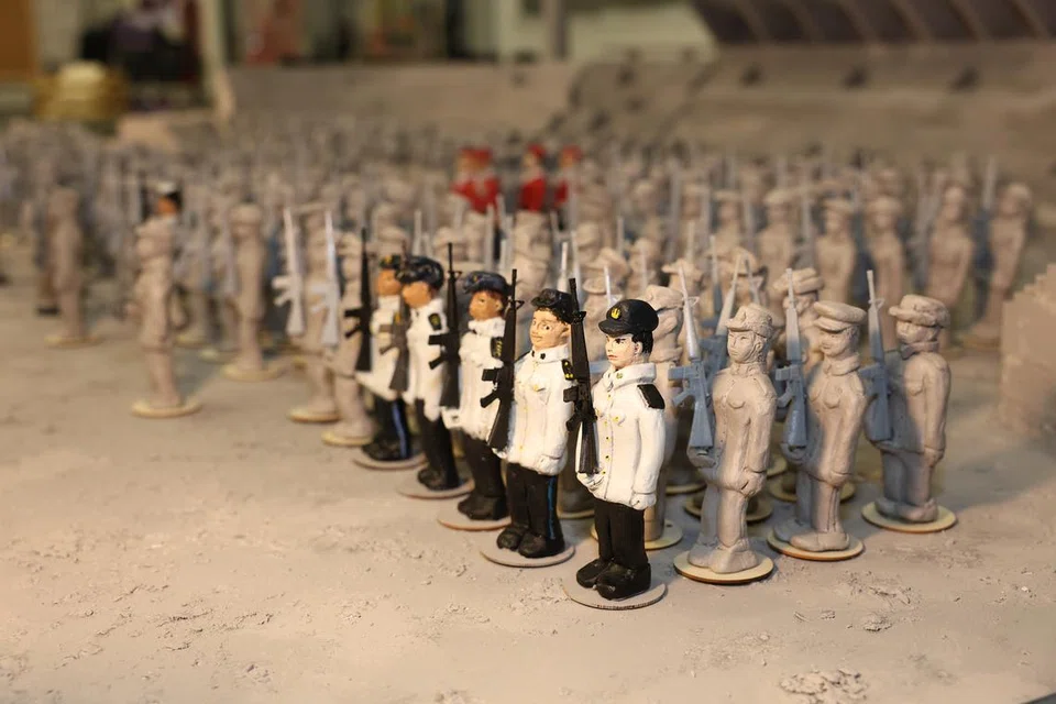 மறைந்த முன்னாள் அதிபர் எஸ்.ஆர்.நாதனின் கண்காணிப்பில் காலாங் தேசிய அரங்கில் 2006ல் நடைபெற்ற கடைசி தேசிய தின அணிவகுப்பை நினைவுகூரும் வகையில், இந்தக் கலைப்படைப்பில் மரியாதை அணிவகுப்பு முதல் பெண் சாரணர் படை வரை வெவ்வேறு படைப்பிரிவுகளைச் சேர்ந்த 250க்கும் மேற்பட்ட கைவினைக் களிமண் சிலைகள் இடம்பெற்றுள்ளன.