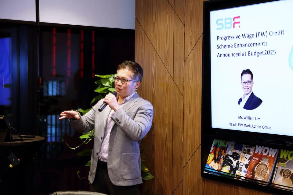 படிப்படியான சம்பள உயர்வு முறையின்கீழ் தகுதிபெறும் குறைந்த வருமான ஊழியர்களுக்கான சம்பள உயர்வில் இவ்வாண்டும் அடுத்த ஆண்டும் அரசாங்கப் பங்களிப்பு அதிகரிக்கவுள்ளதை விளக்கினார் சிங்கப்பூர் வர்த்தகச் சம்மேளனத்தின் படிப்படியான சம்பள உயர்வுக்கான முத்திரை நிர்வாகப் பிரிவுத் தலைவர் வில்லியம் லிம்.