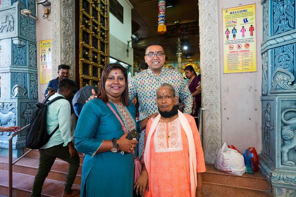 மலேசியாவிலிருந்து தம் அத்தையைக் காண சிங்கப்பூர் வந்திருக்கும் திருவாட்டி யோகேஸ்வரி சாமிநாதன், தம் கணவர் நந்தகுமாரின் பிறந்தநாளும் புத்தாண்டு அன்றே அமைந்ததால் இரட்டிப்பு மகிழ்ச்சியுடன் கோவிலுக்கு வந்ததாகக் கூறினார்.