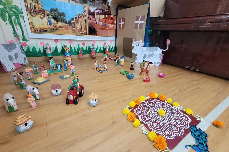 பொங்கல் அறுவடையைக் காட்சிப்படுத்தும் பொம்மைகள்; வாழையிலை உணவு; தரையில் பெரிய பரமபதம் விளையாட்டு; திருவள்ளுவர், பாரதியார், கம்பர் போன்ற புலவர்களையும் மயிலாட்டம், கோலாட்டம், கும்மியாட்டம் போன்ற நடனங்களையும் சித்திரிக்கும் சுவரொட்டிகள் - தமிழ்ப் பண்பாட்டைப் பறைசாற்றும் கூறுகளுக்குப் பஞ்சமில்லை.