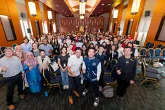 கிரேண்ட் ஹயாட் ஹோட்டலில் சனிக்கிழமை (நவம்பர் 23) நடைபெற்ற நிகழ்ச்சியில் பங்கேற்ற தொண்டூழியர்களும் வருகையாளர்களும் கேளிக்கை விளையாட்டுகளில் மகிழ்ச்சியுடன் ஒன்றுகூடினர்.
