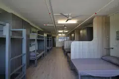 ஒவ்வோர் அறையிலும் 6-3-3 என்னும் வகையில் படுக்கை அமைப்பு உள்ளது. இதில் ஆறு ஒற்றைப் படுக்கைகளும், மூன்று ‘லாஃப்ட்’ (Loft) வகைப் படுக்கைகளும் உள்ளன.