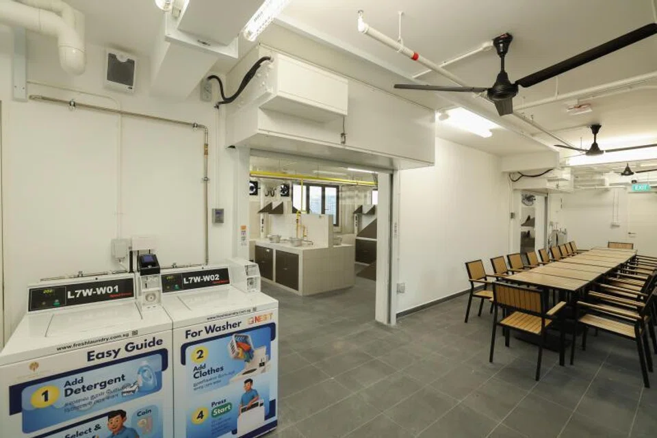 அறைகளில் சமைப்பதைத் தவிர்க்கவும், சுகாதாரத்தைப் பேணவும் ஏதுவாக ஒவ்வொரு தளத்திலும் சமையல் கூடமும் பொதுவான உணவு உண்ணும் இடங்களும் (Communal Dining Areas) உள்ளன.