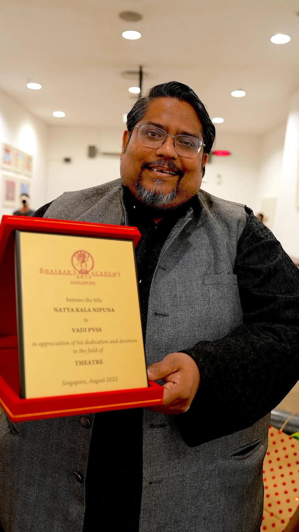 அண்மையில் நடைபெற்ற பாஸ்கரீயம் கலை நிகழ்ச்சியில் ‘நாட்டிய கலா நிபுணர்’ விருதுடன் உள்ளூர் பிரபல நாடகக் கலைஞர் வடிவழகன் (வடி பிவிஎஸ்எஸ்) கௌரவிக்கப்பட்டுள்ளார்.