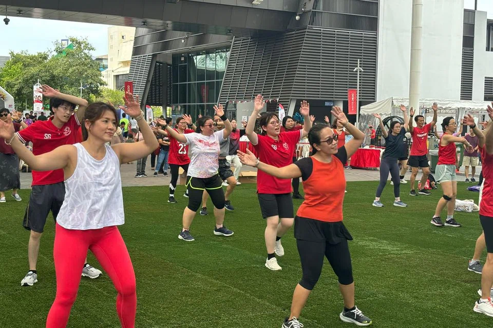 கொண்டாட்டங்களின் உற்சாகத்தைக் கூட்ட சிங்கப்பூர் விளையாட்டு நடுவத்தின் பரந்த திடலில் பலரும் ஒன்றுகூடி பாடல்களின் தாளத்துக்கு ஏற்றாற்போல் உடற்பயிற்சி செய்து, ‘முவே தாய்’ தற்காப்புக் கலை போன்றவற்றில் ஈடுபட்டனர்.