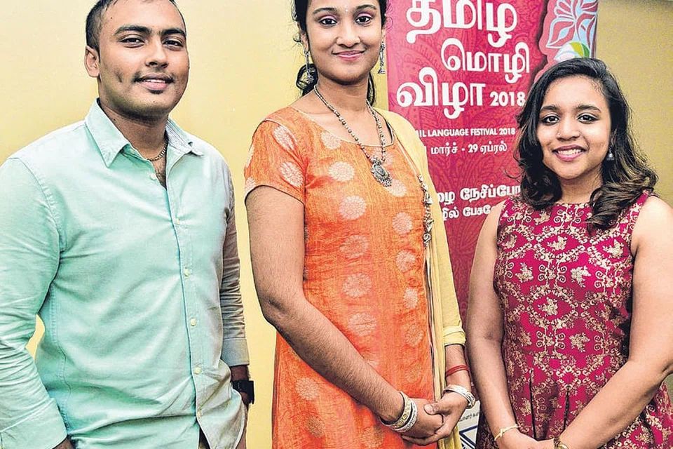 வளர்தமிழ் இயக்கத்தின் புதிய உறுப்பினர்கள் (இடமிருந்து) சுந்தர் பிலவேந்தர்ராஜ், அஷ்வினி செல்வராஜ், ஹரிணி வி. படம்: ஸ்ட்ரெய்ட்ஸ் டைம்ஸ்