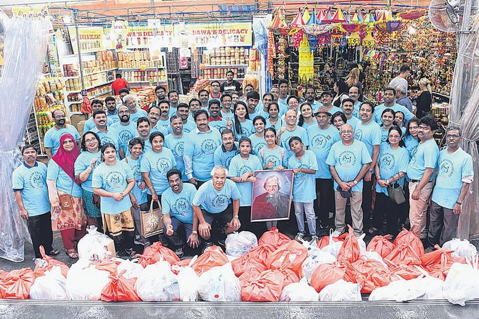 தேக்கா பகுதியில் தாங்கள் சேகரித்த குப்பைகளுடன் அப்துல் கலாம் இலட்சிய கழகத் தொண்டூழியர்கள். படங்கள்: நாதன் வீடியோஸ்