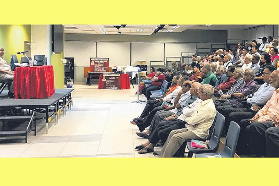 சுமார் 80 பேர் கலந்துகொண்ட நிகழ்ச்சியில் உரையாற்றிய பேராசிரியர் அப்துல் காதர். படம்: சிங்கப்பூர்த் தமிழ் எழுத்தாளர் கழகம் -