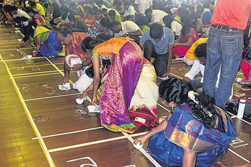 தமிழ் மொழியில் உள்ள 247 எழுத்துகளையும் அந்த எழுத்துகள் இடம்பெற்ற சொற்களையும் எழுதி திருமதி ரம்யா சுரேஷ், திருமதி காயத்ரி பிரகாஷ் ஆகியோர் சிங்கப்பூர் சாதனைப் புத்தகத்தில் இடம்பிடித்துள்ளனர். பங்கேற்பாளர்கள், அந்த எழுத்து களைச் சுற்றிக் கோலத்தையும் வரைந்திருந்தனர். ஓர் எழுத்துக்கு ஒருவர் என்ற வீதத்தில் 247 பேரும், கோலமிட்ட 40 பேரும் என ஐந்து முதல் 68 வயது வரையிலான சுமார் 290 பேர் பங்கு கொண்டனர். நிகழ்ச்சியில் பங்கேற்ற திரு ஜோதி மாணிக்கவாசகம் ஞ, ங வரிசையிலான எழுத்துகளைப் பயன்படுத்தும் சொற்கள் ஏன் புழக்கதில் இல்லை என்பதை விளக்கிக் கூறினார். அச்சொற்களுக்கு ஈடான எளிய சொற்கள் பயன்பாட்டில் வந்துவிட்டதால் அச்சொற்கள் தேவையற்றவையாகி விட்டன என்றார் அவர். உட்லண்டஸ் வட்டாரத்தில் இருக்கும் ஃபூசுவான் உயர்நிலைப்பள்ளி யில் மே 25ஆம் தேதி நடந்த இந்த நிகழ்ச்சியில் பரதநாட்டியம், கரகாட்டம் என இந்திய பாரம்பரிய நடனங்களும் தொடக்கத்தில் இடம்பெற்றன. படம்: ரம்யா