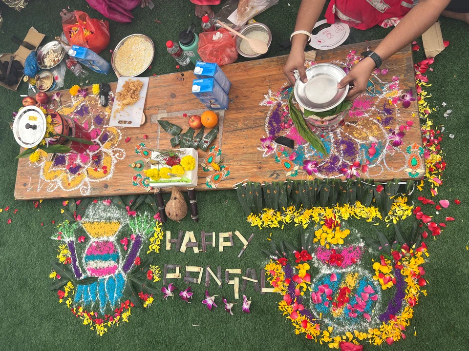 ஒவ்வொரு குழுவினரும் தங்கள் மேடைமேல் ரங்கோலிக் கோலமிட்டு, பொங்கல் பானைகளுக்கு வண்ணம் தீட்டி, மாவிலைத் தோரணம், மஞ்சள் கொத்து, பூக்கள், விளக்குகள் உள்ளிட்டவற்றைக் கொண்டு அலங்கரித்தனர்.