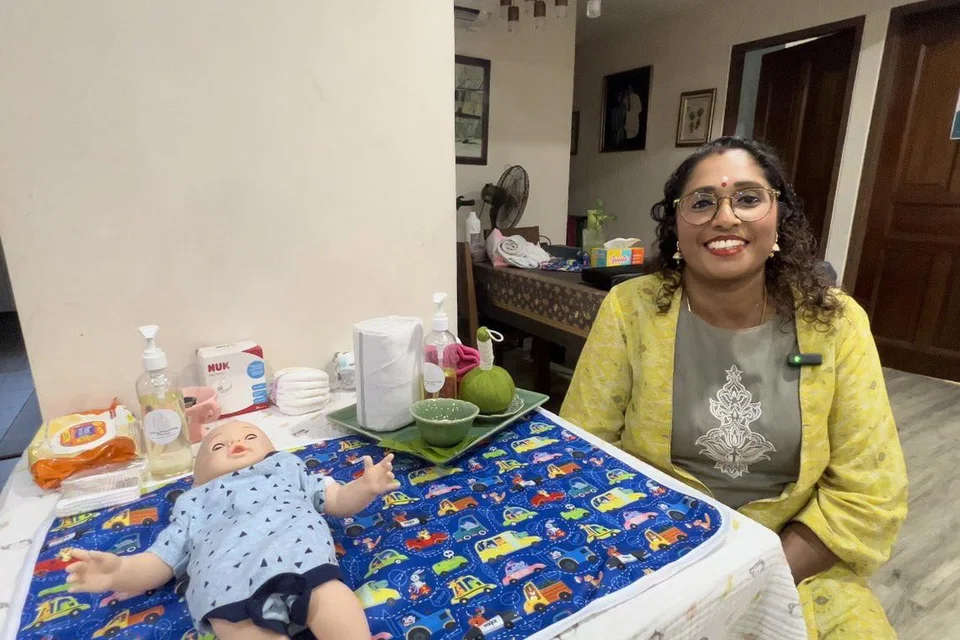 சுபத்திரா லக்ஷ்மணன், 37, கடந்த ஐந்தாண்டுகளாக குழந்தைகளின் தசைகளைப் பிடித்துவிடுதல், தாய்மார்களுக்குப் பிரசவத்திற்குப் பின் உடலை உருவி விடுதல் (மசாஜ்), தேவைப்படும்போது குழந்தையைக் குளிப்பாட்டுதல் போன்ற சேவைகளை வழங்கி வருகிறார்.