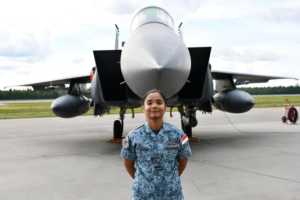 ‘தலைசிறந்த போர் விமானத் தலைமுறைப் படைப்பிரிவு’ பட்டத்தை வென்ற ‘பிசி V’வைச் சேர்ந்த, முதலாம் ராணுவ வல்லுநர் நாவனி அமுதலிங்கம், 25, தன் முதல் சிவப்புக் கொடிப் பயிற்சியில் பங்குபெற்றுள்ளார்.