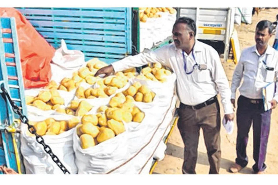 இதையடுத்து நேற்று முன் தினம் அதிகாரிகள் ஏலம் நடை பெறும் மண்டிக்குச் சென்று வாக னங்களில் கொண்டு வரப்பட்ட வெல்லச் சிப்பங்களைக் கைப் பற்றிச் சோதனை மேற்கொண்டனர். அப்போது வெல்லம் வெளிர் நிறத்தில் இருப்பதைக் கண்டனர். மேலும் தயாரிப்புத் தேதி, முகவரி உள்ளிட்ட விவரங்கள் குறிப்பிடப்படாதது, வாகனங்களில் வெல்லம் கொண்டு வருவதற்கு உரிமம் பெறாதது உள்ளிட்ட காரணங்களின் அடிப்படையில் 40,000 கிலோ வெல்லம், 35 சிறிய ரக லாரிகள் ஆகியவற்றை அதி காரிகள் பறிமுதல் செய்தனர்.