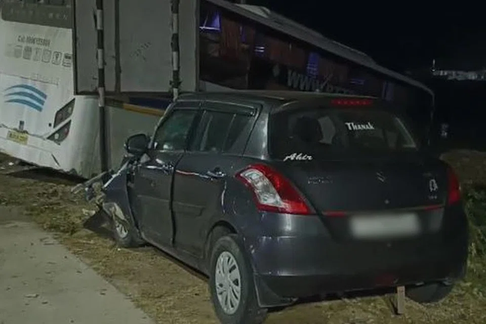 “சாலையில் திரிந்த மாட்டைக் காப்பாற்ற முயன்றபோது, தடுப்பின் மீது மோதி இரண்டு கார்கள், ஒரு பைக் மீது பேருந்து மோதியுள்ளது. குஜராத் மாநிலம், துவாரகா மாவட்டம் அருகே உள்ள துவாரகா-கம்பலியா தேசிய நெடுஞ்சாலையில் சனிக்கிழமை இரவு இந்த விபத்து நடந்தது.