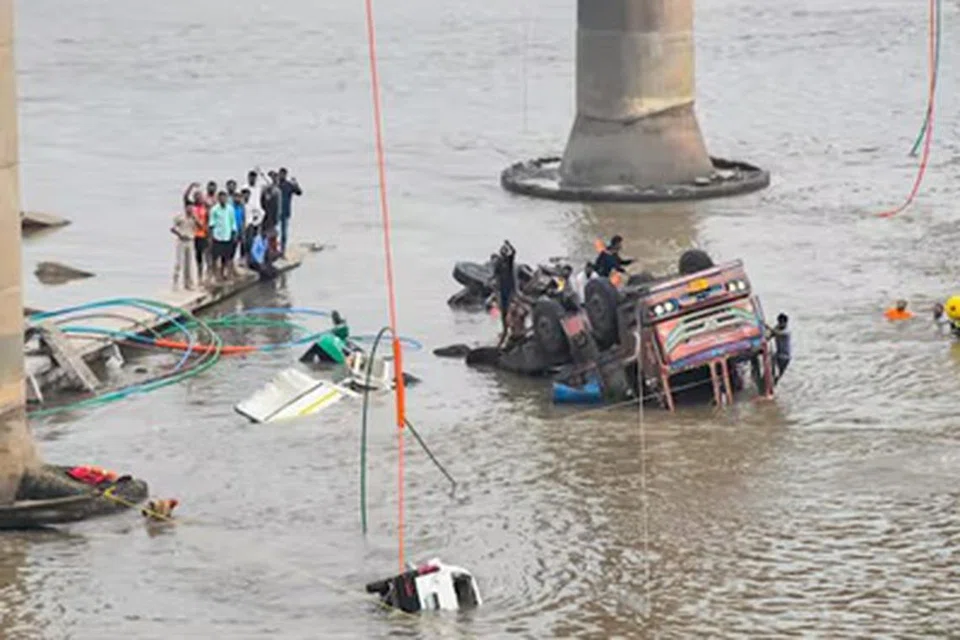 அங்குள்ள வதோதரா மாவட்டத்தில் அமைந்துள்ள கம்பீரா பாலத்தின் ஒருபகுதி, புதன்கிழமை (ஜூலை 9) காலை திடீரென இடிந்து விழுந்தது. அப்போது அப்பாலத்தில் சென்று கொண்டிருந்த சில வாகனங்கள் ஆற்றுக்குள் விழுந்ததில் மேலும் பலர் காயமடைந்தனர்.