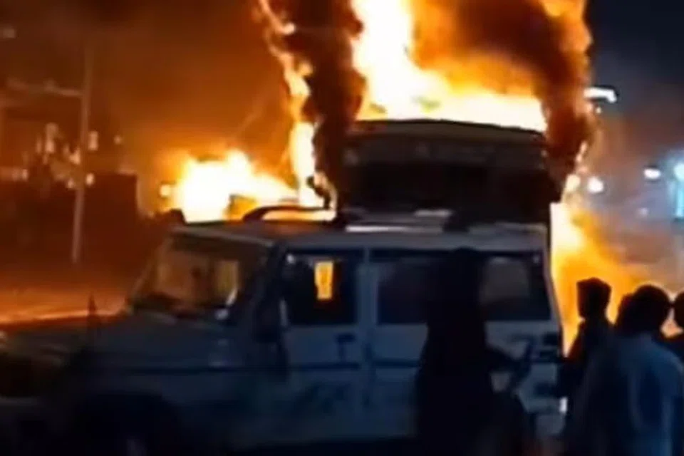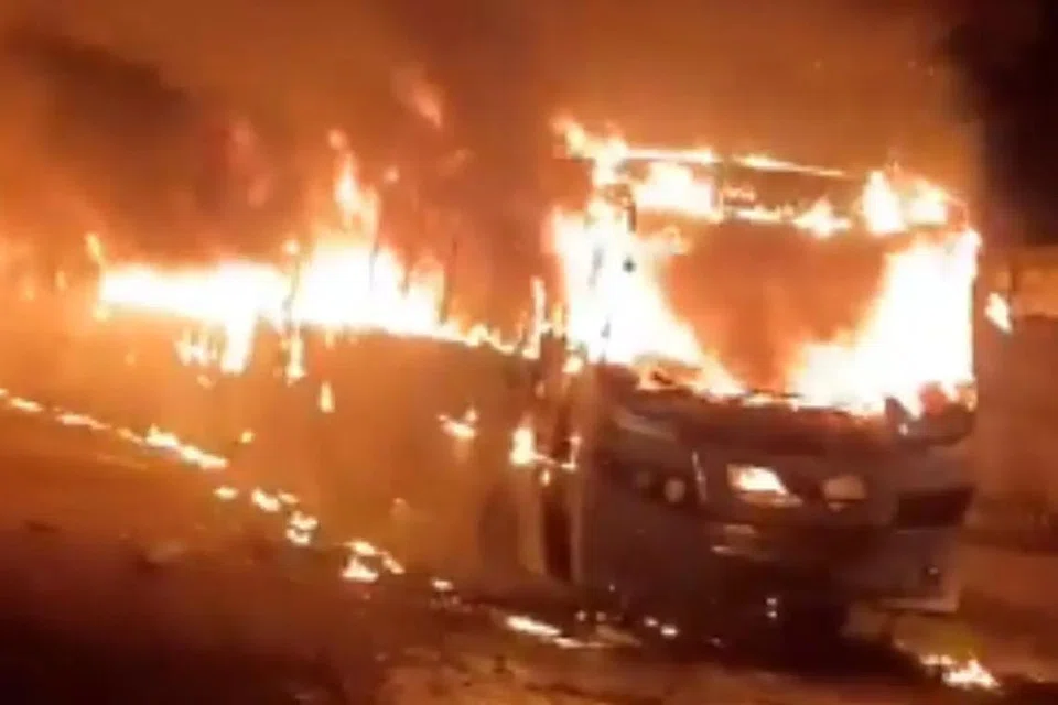 அதனால் ஆத்திரமடைந்த உள்ளூர்வாசிகள் சாலையில் போராட்டத்தில் ஈடுபட்டதுடன், பேருந்துகள், லாரிகள் என குறைந்தது 11 வாகனங்களைத் தீவைத்து எரித்தனர்.