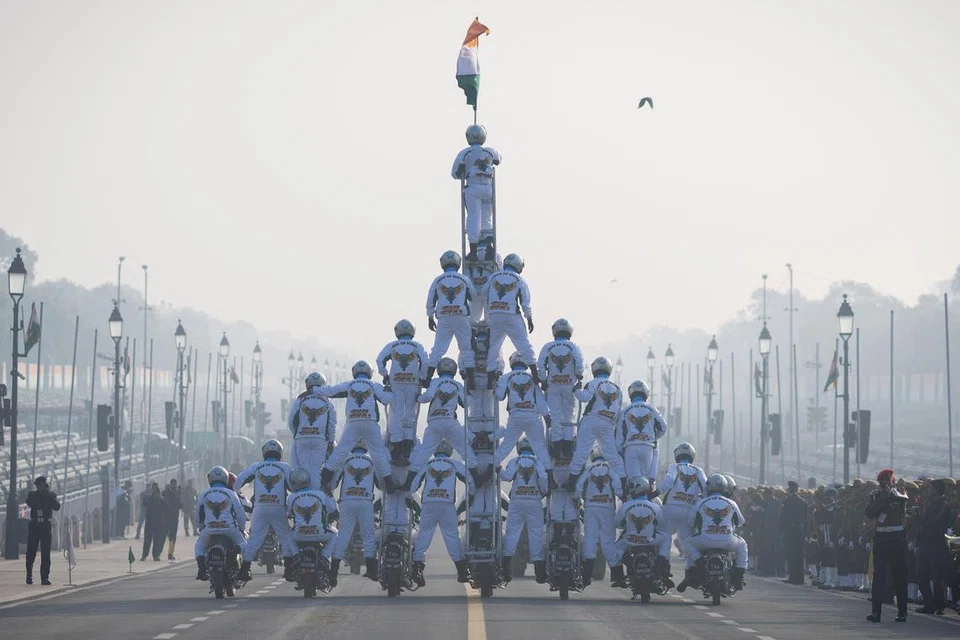 இந்தியா கேட் பகுதியில் உள்ள கார்த்திவ்யா பாத்தில் இருந்து விஜய் சௌக் வரை அந்த மனிதக் கோபுரம் நகர்ந்து சென்றது.