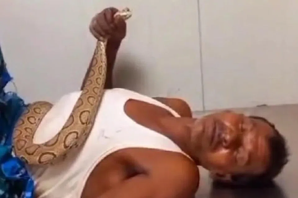 நோயாளி படுக்கையில் இருந்தபோதும் அவர் பாம்பை விடாமல் பிடித்திருந்ததை இன்னொரு காணொளி காட்டியது. வலியால் துடித்தபோதும் பாம்பு தன் பிடியைவிட்டு நழுவிவிடக்கூடாது என்பதில் அவர் உறுதியாக இருந்ததுபோல் தெரிந்தது.