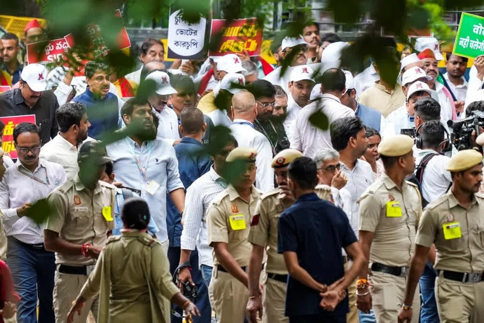 ராகுல் காந்தி தலைமையில் இந்தியா கூட்டணி நாடாளுமன்ற உறுப்பினர்கள் நாடாளுமன்றத்தில் இருந்து தேர்தல் ஆணைய அலுவலகத்தை நோக்கிப் பேரணியாகச் செல்லவுள்ளனர். இந் நிலையில், பின்வரும் கோரிக்கைகளை திமுக வலியுறுத்தியுள்ளது.