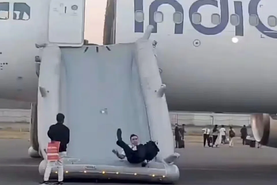 ‘பிடிஐ’ செய்தி நிறுவனம் பதிவேற்றிய காணொளியில், இண்டிகோ விமானத்தின் அவசரகாலக் கதவு வழியாகப் பயணிகள் வெளியேற்றப்படுவதைக் காண முடிந்தது.
