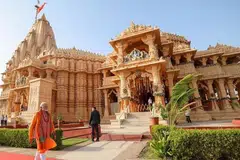 பிரம்மாண்ட ட்ரோன் காட்சி: விழாவை முன்னிட்டு 3,000 ட்ரோன்கள் மூலம் விண்ணில் சிவபெருமான், சர்தார் படேல், பிரதமர் மோடி மற்றும் கோயிலைக் காக்க உயிர்த் தியாகம் செய்த வீர் ஹமிர்ஜி கோகில் ஆகியோரின் உருவங்கள் பிரம்மாண்டமாகச் சித்திரிக்கப்பட்டன. முன்னதாக, வரவேற்பு நிகழ்ச்சியில் பிரதமர் மோடி உற்சாகமாக மேளம் அடித்தது குறிப்பிடத்தக்கது.