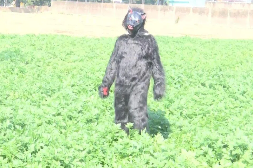 “இப்பகுதியில் நூற்றுக்கும் மேற்பட்ட குரங்குகள் இத்தகைய பாதிப்புகளை ஏற்படுத்தி வருகின்றன. அதனால், விவசாயிகள் கரடி வேடமிட்டு அவற்றை அச்சுறுத்தி வருகின்றனர். கரடி வேடமிட்டுள்ள விவசாயிகளைக் கண்டு அவை ஓடிவிடுகின்றன. தற்போது எங்களில் சிலர் இந்த முறையைக் கையாண்டு வருகின்றனர்,” என்று அவர் விளக்கினார்.