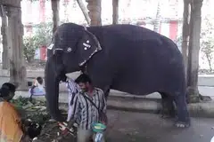 யானைகள் அல்லது மற்ற விலங்குகளை சடங்குகள், பண்டிகைகளுக்கு பயன்படுத்தக்கூடாது என்று கோயில் நிர்வாகம் அண்மையில் முடிவெடுத்தது. அதனைத் தொடர்ந்து, பீட்டா இந்தியா நிறுவனம் இயந்திர யானையை கோயிலுக்கு பரிசளித்தது.