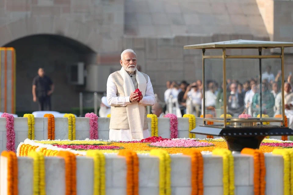 டெல்லி ராஜ்காட்டில் உள்ள காந்தி நினைவிடத்திற்குச் சென்று மலர்தூவி வணக்கம் செலுத்திய பிரதமர் மோடி, “மதிப்பிற்குரிய மகாத்மா காந்திக்கு மரியாதை செலுத்தினேன். தேசத்தின் தந்தை என்று போற்றப்படும் காந்தி, உண்மை மற்றும் அகிம்சைக் கொள்கைகளை உறுதியாகப் பின்பற்றி, உலகெங்கிலும் உள்ள அரசியல்வாதிகள் மற்றும் ஆர்வலர்களின் தலைமுறைகளுக்கு முன்மாதிரியாகத் திகழ்கிறார்,” என்று தமது எக்ஸ் ஊடகப் பக்கத்தில் பதிவிட்டுள்ளார்.