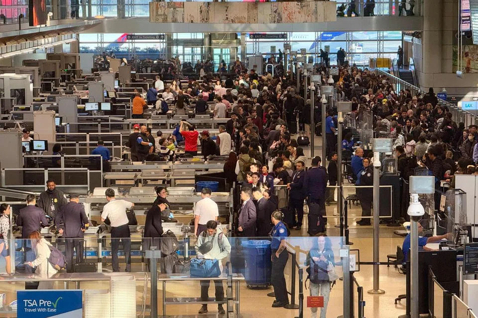 லாஸ் ஏஞ்சலிஸ் அனைத்துலக விமான நிலையத்தில் பயணிகள் குடிநுழைவுச் சோதனையை முடிக்கின்றனர். - கோப்புப் படம்: ஏஎஃப்பி