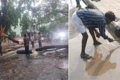 திங்கட்கிழமை (மே 19) பெங்களூருவில் உள்ள அடுக்குமாடி குடியிருப்புகளின் அடித்தளங்கள், தாழ்வான பகுதிகள் எனப் பல இடங்கள் வெள்ளத்தில் மூழ்கின.