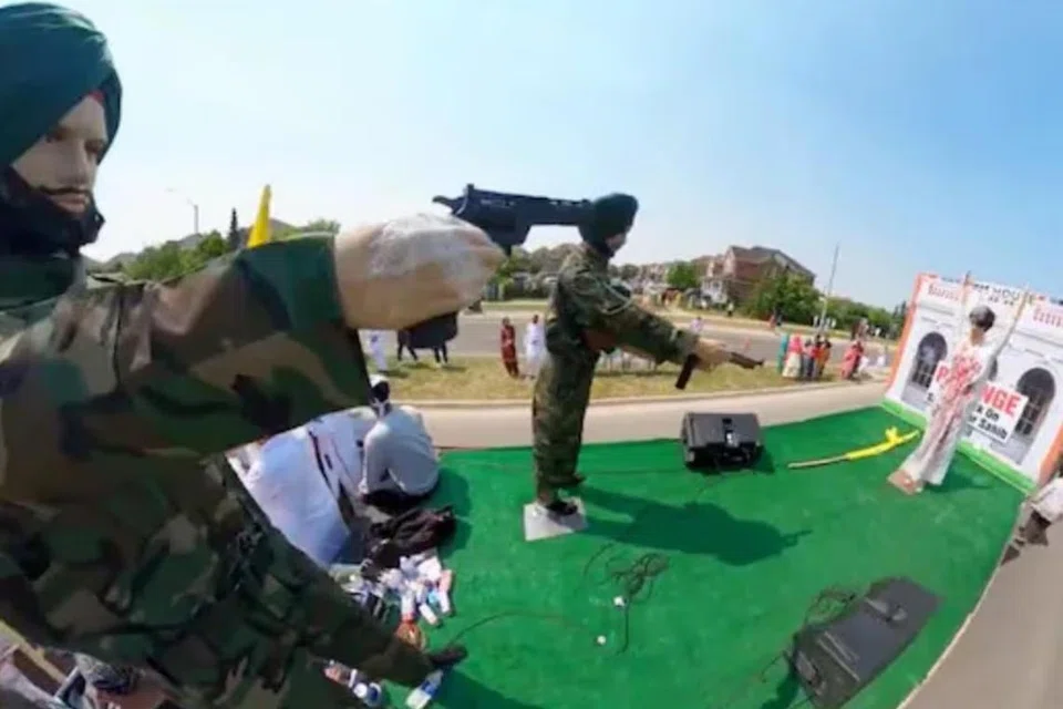 ‘ப்ளூ ஸ்டார் ஆப்பரேசன்’ 40வது ஆண்டு தினத்தை முன்னிட்டு கனடாவின் பிராம்ப்டன் நகரில், முன்னாள் பிரதமர் இந்திராவை அவரது பாதுகாவலர்கள் சுட்டுக் கொன்றதைச் சித்திரித்து அலங்கார ஊர்தி ஊர்வலம் நடைபெற்றுள்ளது.