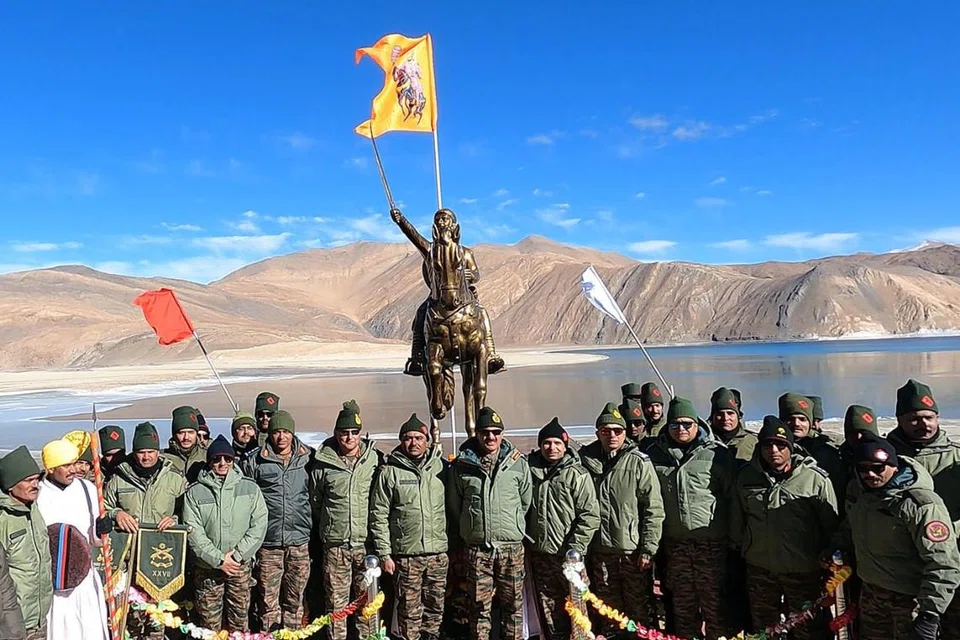 கிழக்கு லடாக் பகுதியில், சீன எல்லைக்கோட்டுப் பகுதியை ஒட்டி, பங்கோங் ஏரிக்கரையில் வீர சிவாஜியின் சிலை நிறுவப்பட்டுள்ளது.
