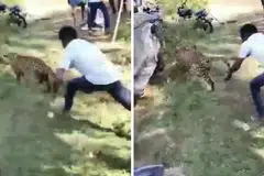 காட்டுப் பகுதியிலிருந்து செங்கல் சூளைக்குள் வந்த அந்தச் சிறுத்தையின் கழுத்து, தலை, கால்கள் ஆகியவற்றை அழுத்திப் பிடித்து அவர் தன் உயிரைக் காப்பாற்றிக்கொள்ளப் போராடுவதை அந்தக் காணொளியில் காண முடிகிறது.