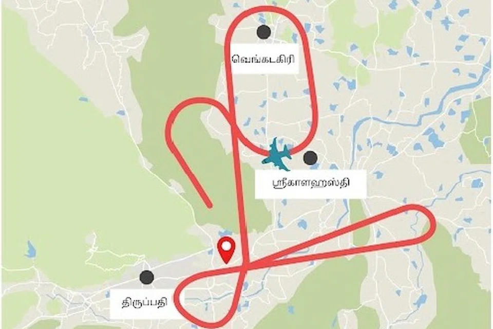 வெங்கடகிரி நகர் வரை சென்ற விமானம் பின்னர் புறப்பட்ட இடத்துக்கே திரும்பியதை அந்த இணையத்தளத்தில் பதிவேற்றப்பட்டுள்ள விமானப் பாதையின் படம் காட்டுகிறது.