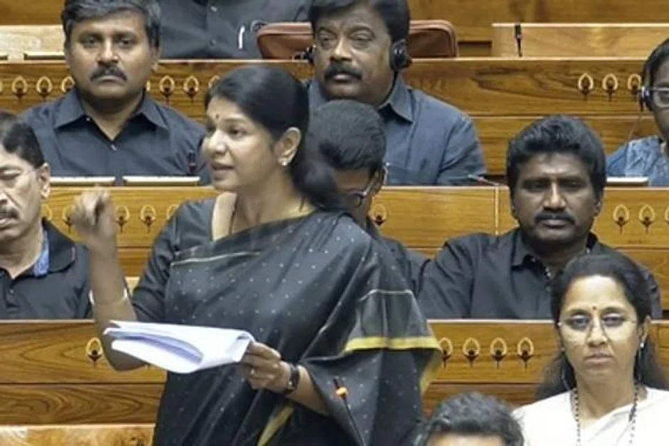 “கருப்புக் கொடி என்பது போராட்டத்தின் அடையாளம். நீலக் கொடி என்பது அம்பேத்கர் அவரது கட்சிக்காகத் தேர்வு செய்தது என்பதை நினைவூட்ட விரும்புகிறேன். அதைத்தான் நீங்கள் நிராகரித்தீர்கள். அம்பேத்கர் உருவாக்கிய அரசியலமைப்புச் சட்டத்தை நீங்கள் சீர்குலைக்க நினைக்கிறீர்கள். நாங்கள் பாதுகாக்க முயற்சிக்கிறோம்,” என்று கூறினார் கனிமொழி.