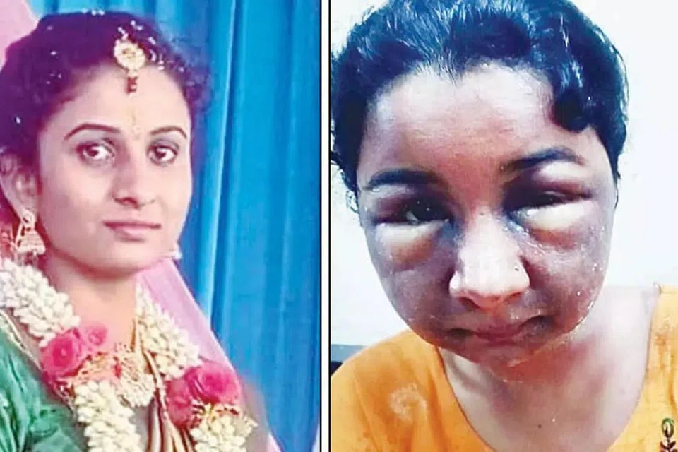 இதையடுத்து, இளம்பெண்ணின் முகம் கறுப்பாகிப்போனது; முகம் வெந்து கொப்புளங்கள் வந்தன. கண்களும் கன்னமும் வீங்கிப்போயின. இதனால், இப்போது திருமணமும் நின்றுபோக, அந்த இளம் பெண்ணும் அவரின் குடும்பத்தினரும் செய்வதறியாது தவிக்கின்றனர்.