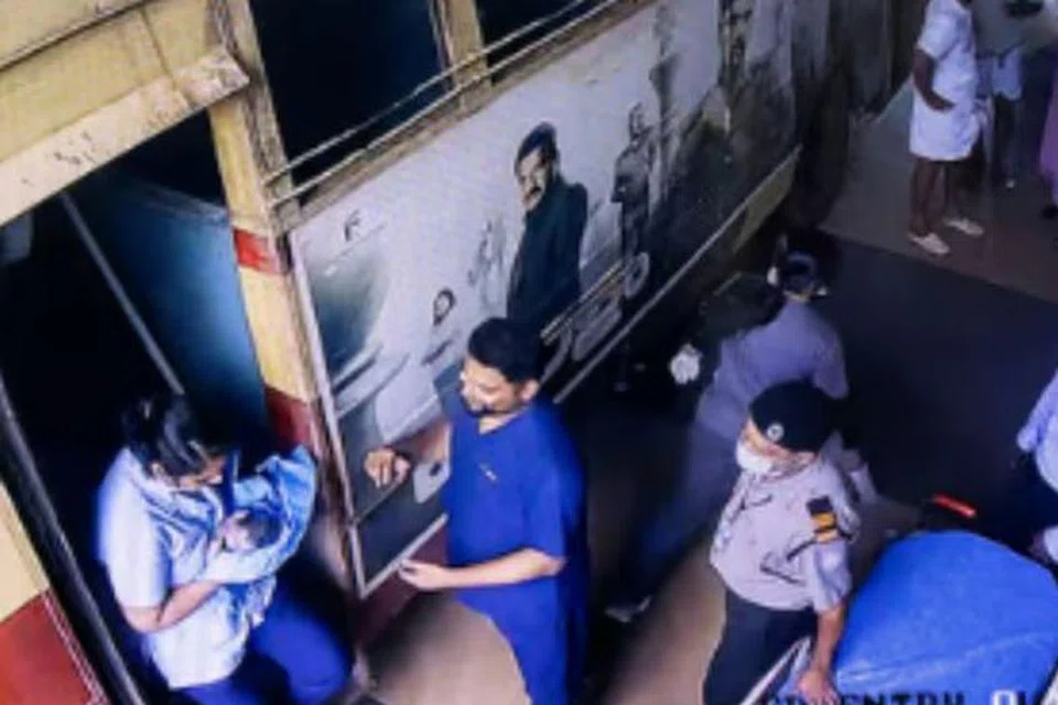 பேருந்தின் உள்ளே மருத்துவர்களும் தாதியரும் துரிதமாகச் செயல்பட்டு பிரசவம் பார்த்தனர்.