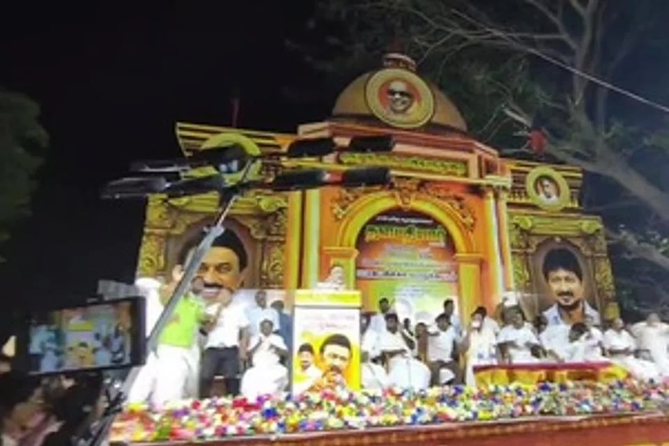 மயிலாடுதுறை: மயிலாடுதுறையில் ஞாயிற்றுக்கிழமை (04.05.2025) இரவு நடைபெற்ற திமுக பொதுக்கூட்டத்தின்போது பலத்த காற்றுடன் பெய்த மழையில் மின்விளக்குக் கம்பம் (போக்கஸ் லைட்) மேடையில் சாய்ந்தது. அப்போது பேசிக் கொண்டிருந்த திமுக மக்களவை உறுப்பினா் ஆ. ராசா நூலிழையில் உயிர் தப்பினாா்.