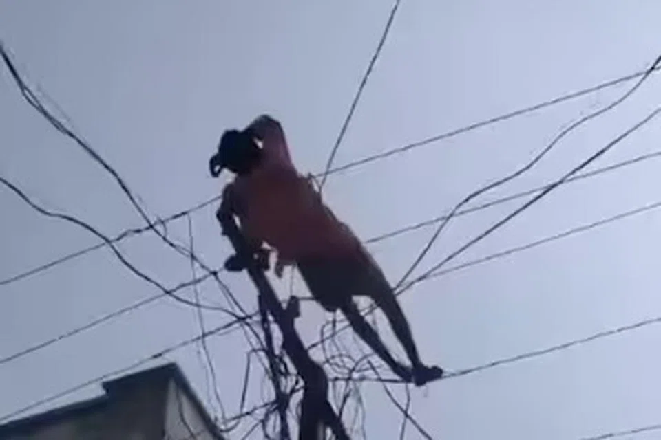 மின்கம்பிகளை அவர் தொட்டால் உயிருக்கு ஆபத்து நேரும் என்ற அச்சத்தில் அந்தப் பகுதியில் சிறிது நேரத்திற்கு மின்விநியோகம் துண்டிக்கப்பட்டது.