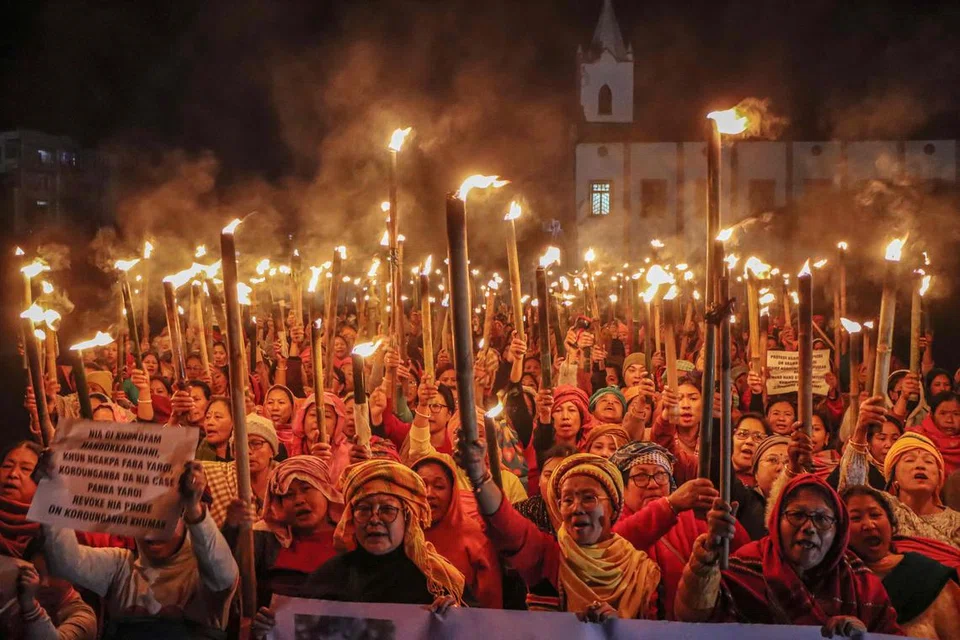 மணிப்பூர் தலைநகர் இம்பாலில் 2024 டிசம்பர் 5ஆம் தேதி அமைதிப் பேரணி ஒன்று நடந்தது. - படம்: ஏஎஃப்பி