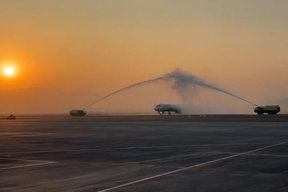 வர்த்தக ரீதியில் சேவை வழங்கும் முதல் விமானத்தை வியாழக்கிழமை காலை 8 மணிக்கு அது கோலாகலமாக வரவேற்றது.