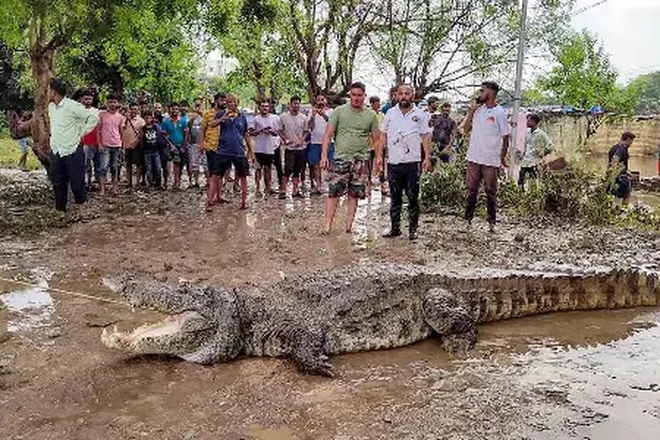 விஸ்வாமித்ரி ஆற்றில் வெள்ளம் பெருக்கெடுத்து ஓடியதால், 10 முதல் 15 அடி நீளமுள்ள பல முதலைகள் சாலைகள், பூங்காக்கள், குடியிருப்புகள் மற்றும் பல்கலைக்கழக வளாகங்களில் வலம்வருகின்றன. கடந்த ஐந்து நாள்களில் 10 முதலைகளை மீட்டுள்ளதாக அதிகாரி ஒருவர் தெரிவித்துள்ளார்.