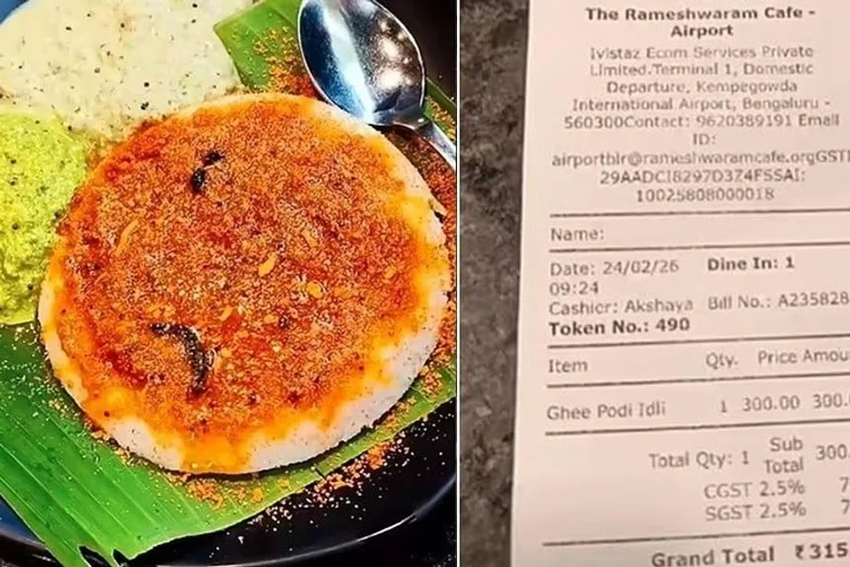 ரெட்டிட் சமூக ஊடகத்தில் அப்பயணி வெளியிட்ட பதிவில், பெங்களூரு கெம்பே கவுடா அனைத்துலக விமான நிலையத்தில் உள்ள ராமேஸ்வரம் கஃபே உணவகத்தில் தாம் ஒரு தட்டு நெய் பொடி இட்லி சாப்பிட்டதாகவும் அதன் விலை 315 ரூபாய் எனவும் அவர் குறிப்பிட்டார்.