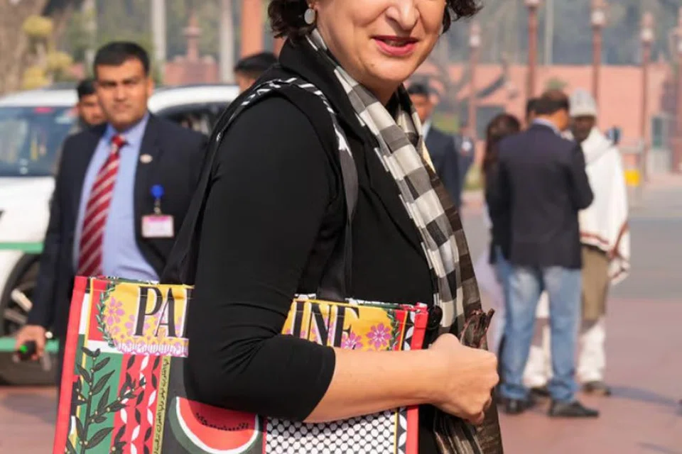 இந்நிலையில், பாலஸ்தீனத்துக்கு ஆதரவு தெரிவிக்கும் வகையில், பிரியங்கா காந்தி நாடாளுமன்றத்துக்கு எடுத்துச் சென்ற கைப்பை அனைவரது கவனத்தையும் ஈர்த்துள்ளது.